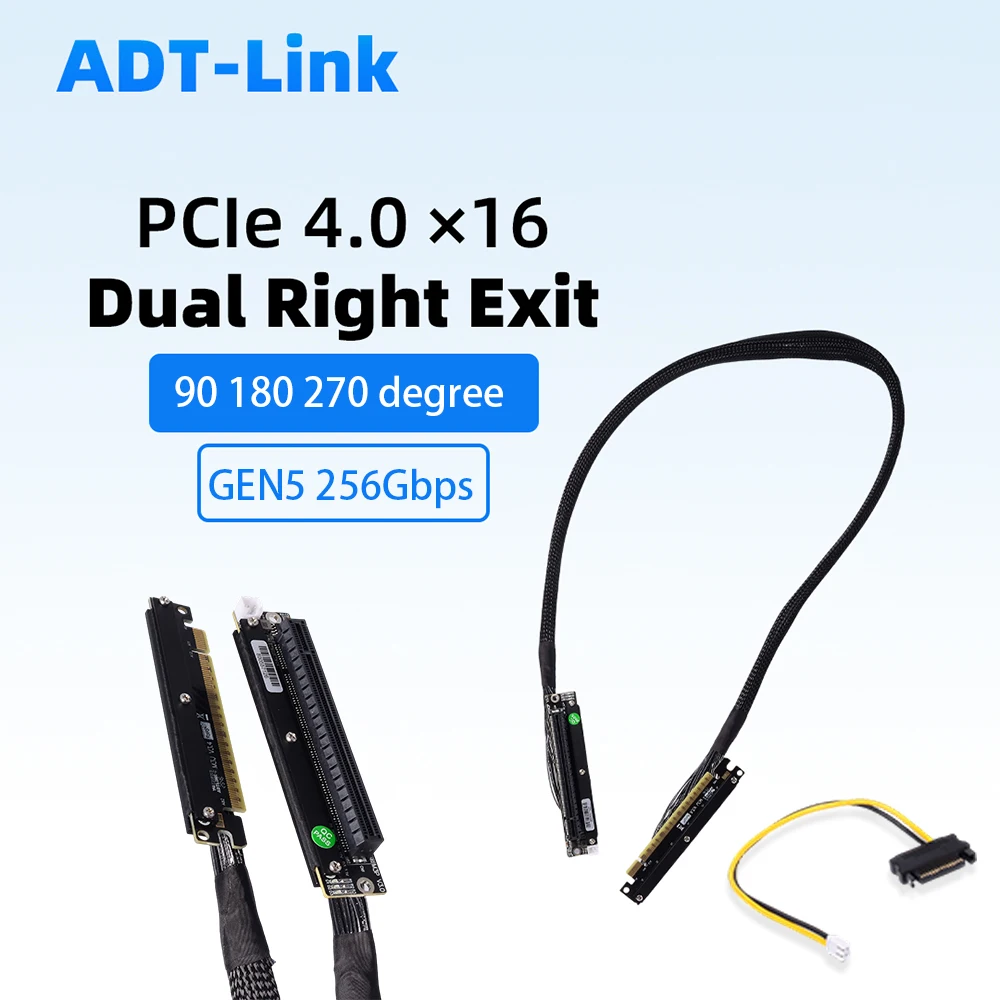 ADT-Link PCIE 4.0 x16 Dual Reverse Riser Cable 90 270 degree GEN4 256Gbps Soft GPU Server Extender For A4 ITX RTX 4090 RX7900xt
