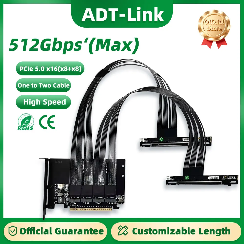 ADT-Link PCIe 5.0 x16 to x8 Split Extension Cable For AI Local Deployment Solution Supports One to Two Bifurcation Adapter