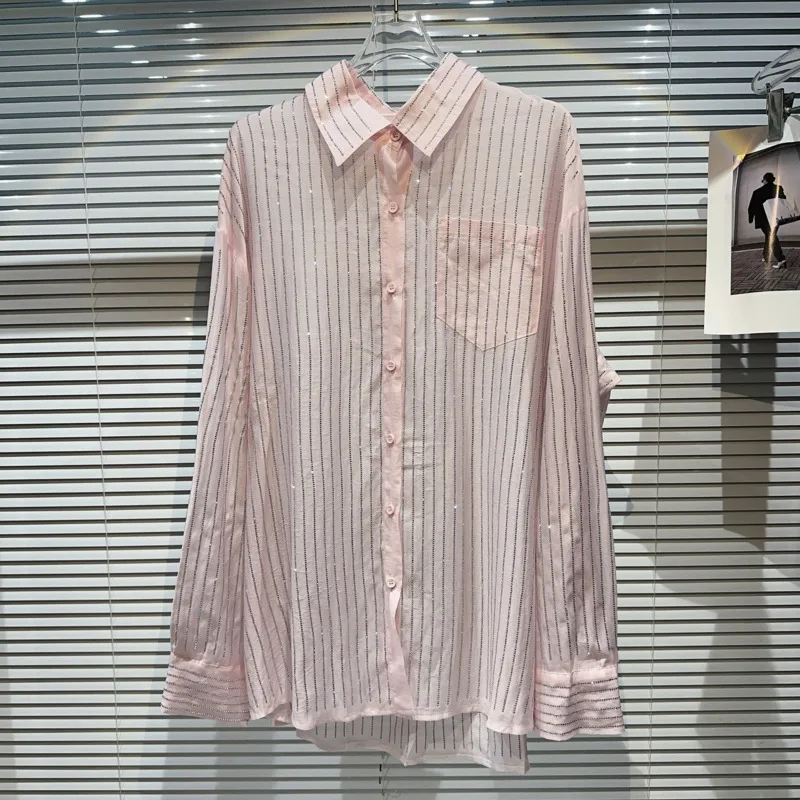 Men Large Size Silky Soft Long Sleeved T-Shirt Summer Loose Bottomed Shirt 2025 Spring White V-Neck Pleated Stripe T-Shirt