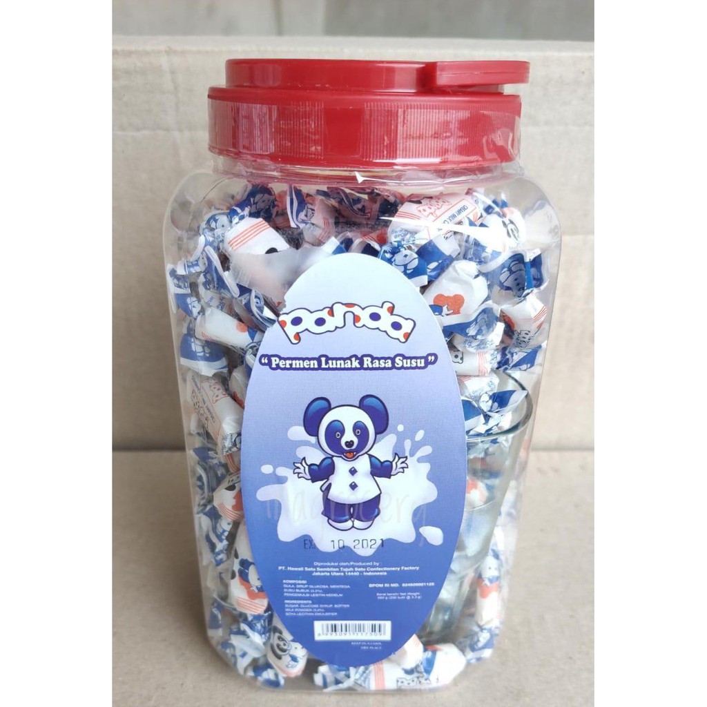 Permen lunak rasa susu merk Panda dikemas dalam sebungkus plastik berisi 151 buah permen yang dibalut kertas putih biru. Saat kertas pembungkusnya dibuka, akan terlihat permen susu yang dilapisi kertas beras (kertas ini bisa dimakan, lho). Rasakan sensasi permen susu yang creamy dan meleleh di lidah. Permen susu ini disukai karena ukurannya yang cukup besar, tebal, dan mengenyangkan. Anda pasti ketagihan dengan rasa susunya yang kaya.