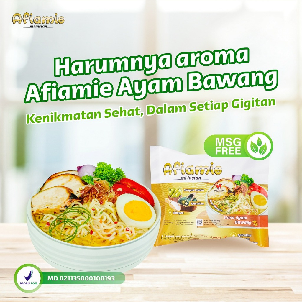 Mie Instan Afiamie adalah mie instan sehat yang rendah natrium. Mie instan ini memiliki kandungan natrium hanya 600mg per porsi, jauh lebih rendah dari mie instan biasa yang umumnya memiliki kandungan natrium antara 1.000-2.000mg per porsi.