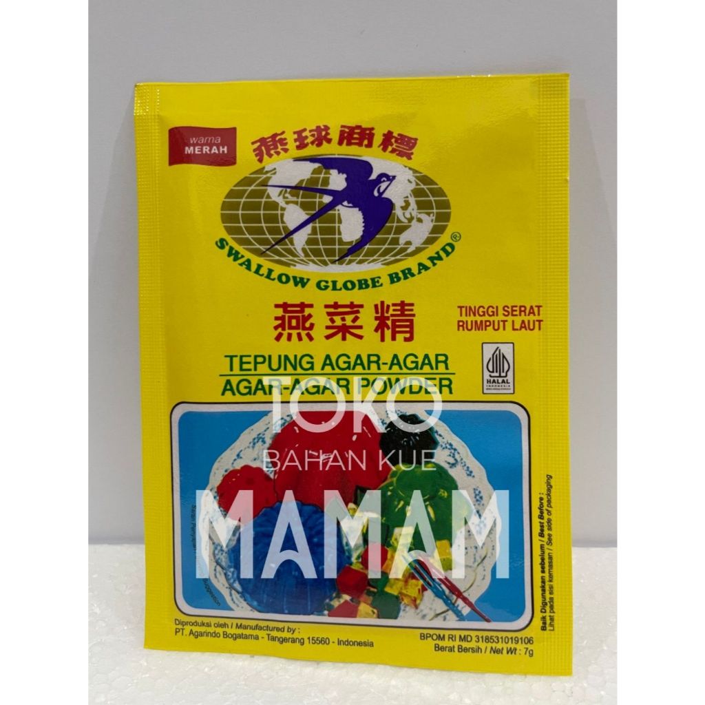 Tepung agar-agar Swallow Globe Brand Berat bersih 7g per sachet .