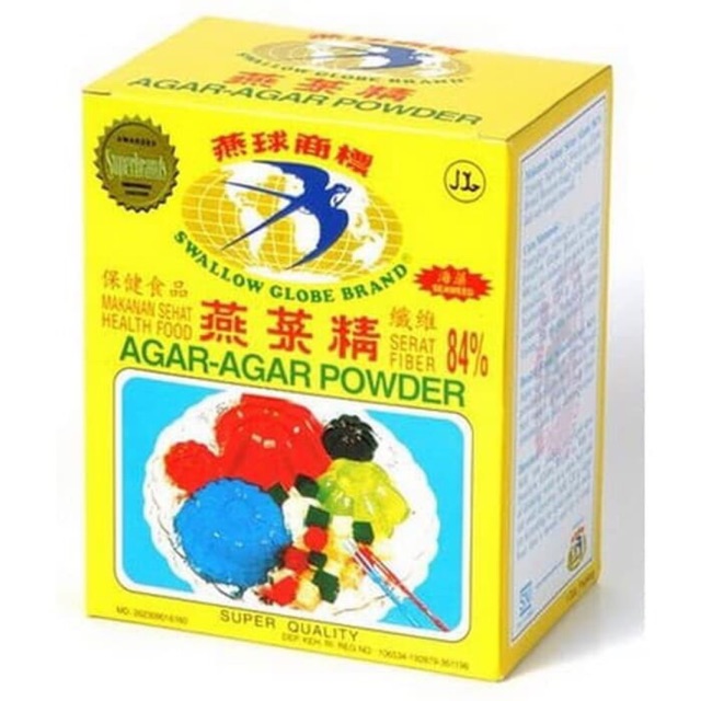 Tepung agar-agar swallow globe brand berserat tinggi yang diolah dari rumput laut.