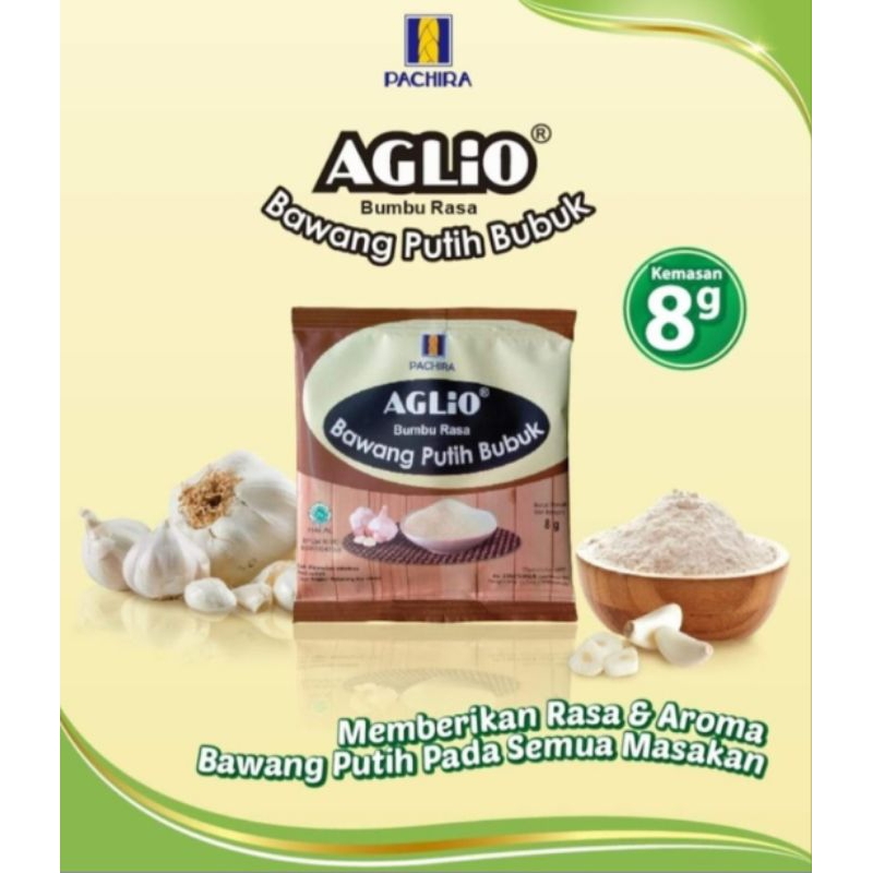 Aglio powder adalah bawang putih bubuk yg memberikan aroma dan rasa tiga kali lebih kuat dibandingkan dengan bawang putih segar, terbuat dari bawang putih yang berkwalitas, sangat cocok digunakan untuk masakan atau makanan yang melibatkan bawang putih