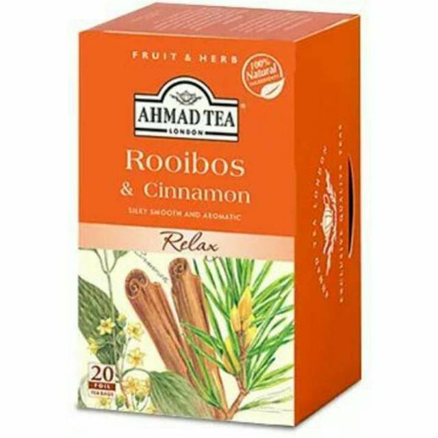 Ahmad tea London rooibos& cinnamon produk yang sudah diakui internasional & masyhur akan kualitasnya, komplit dengan berbagai pilihan rasanya