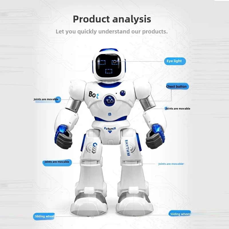 DEERC Robot Electric Robot Toy, Radio Controlled Robot, Smart Robot, Multifunctional Robot, 3 Control Modes, LED Light, Music, Encyclopedia, Demo