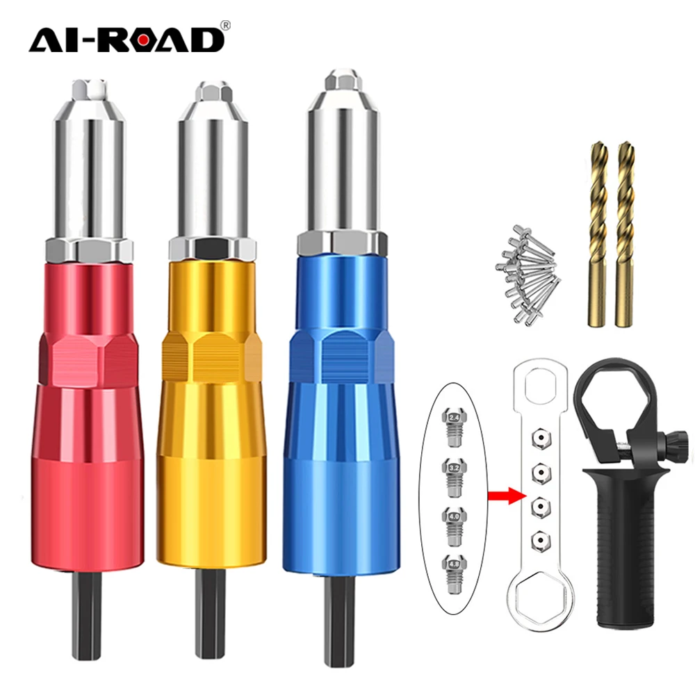 AI-ROAD Hand Rivet Gun Riveting Adapter Set Cordless Drill Riveting Tool Insert Nut Pull Hand Rivet Nut Tool Nail Hand Tools