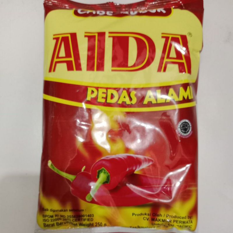 Aida cabe bubuk terbuat dari cabai kering pilihan yg diproses dengan baik sehingga menghadirkan aroma dan sensasi pedas alami