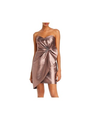 AIDAN MATTOX Женское розовое мини-вечернее платье-футляр без бретелек с асимметричным подолом, Розовый