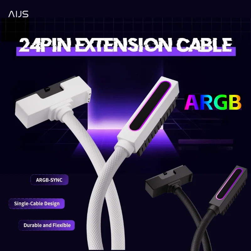 AIJS ATX 24-контактный удлинительный кабель питания материнской платы, ARGB 5 В 3-контактный, 18AWG ONE-Line кабель Удлинитель питания ПК, правая/левая сторона