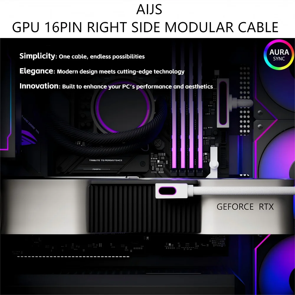 AIJS GPU16Pin Right Side Modular Cable, Graphics Card 18AWG,Male to Male Design,12VHPWR ARGB with 5V 3Pin 5090 Not Applicable