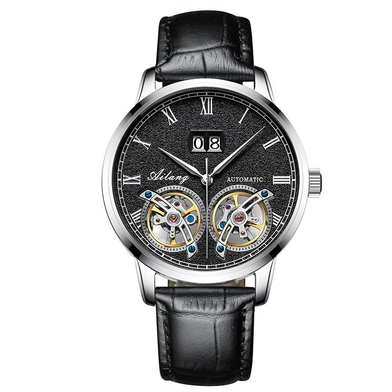 AILANG Мужские полностью автоматические механические часы с двойным маховиком, водонепроницаемые мужские часы с календарем на ремне