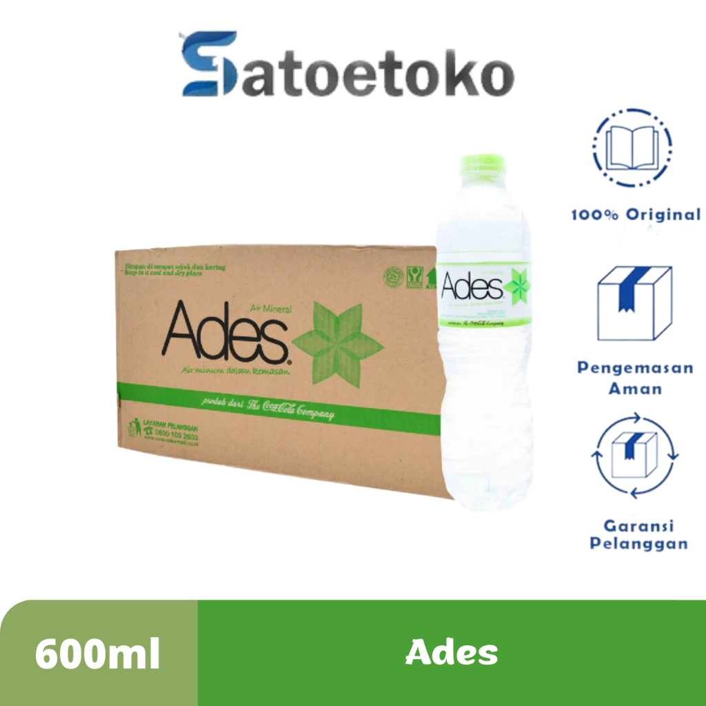 "Ades Air Mineral 600 ml merupakan air minum dalam kemasan yang terbuat dari mata air gunung pilihan yang terjaga unsur mineralnya hingga dapat dikonsumsi dengan baik dan aman setiap hari.