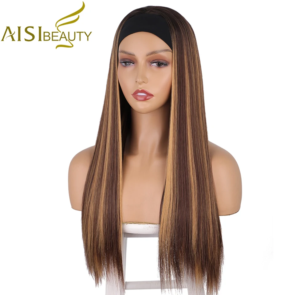 AISI BEAUTY синтетические парики с головной повязкой длинные прямые смешанные коричневые парики для женщин светлые Черные Красные Коричневые