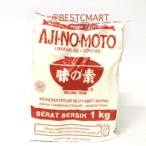 AJINOMOTO UMAMI SEASONING 1 KG Produk ini merupakan sumber rasa gurih dari kaldu rumput laut (Kombu). Ajimonoto telah digunakan luas di hampir 100 wilayah dan negara selama 100 tahun. Berstandar internasional dan dibawah lisensi Ajinomoto Co., Inc., Jepang sebagai perusahaan pertama yang memproduksi penyedap rasa sejak 1909. Ajimonoto memperkaya/memperkuat rasa (gurih/umami) pada masakan atau makanan sehingga mendapatkan kelezatan yang diinginkan baik dalam masakan berkuah, tumisan, gorengan, dll.