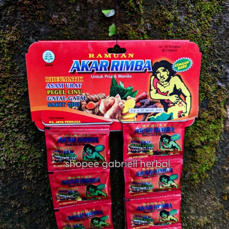 Berbahan ramuan warisan leluhur, Akar Rimba sangat baik dalam membantu penyembuhan reumatik, gusi bengkak, asam urat, sakit gigi, pegal linu dan gatal-gatal.