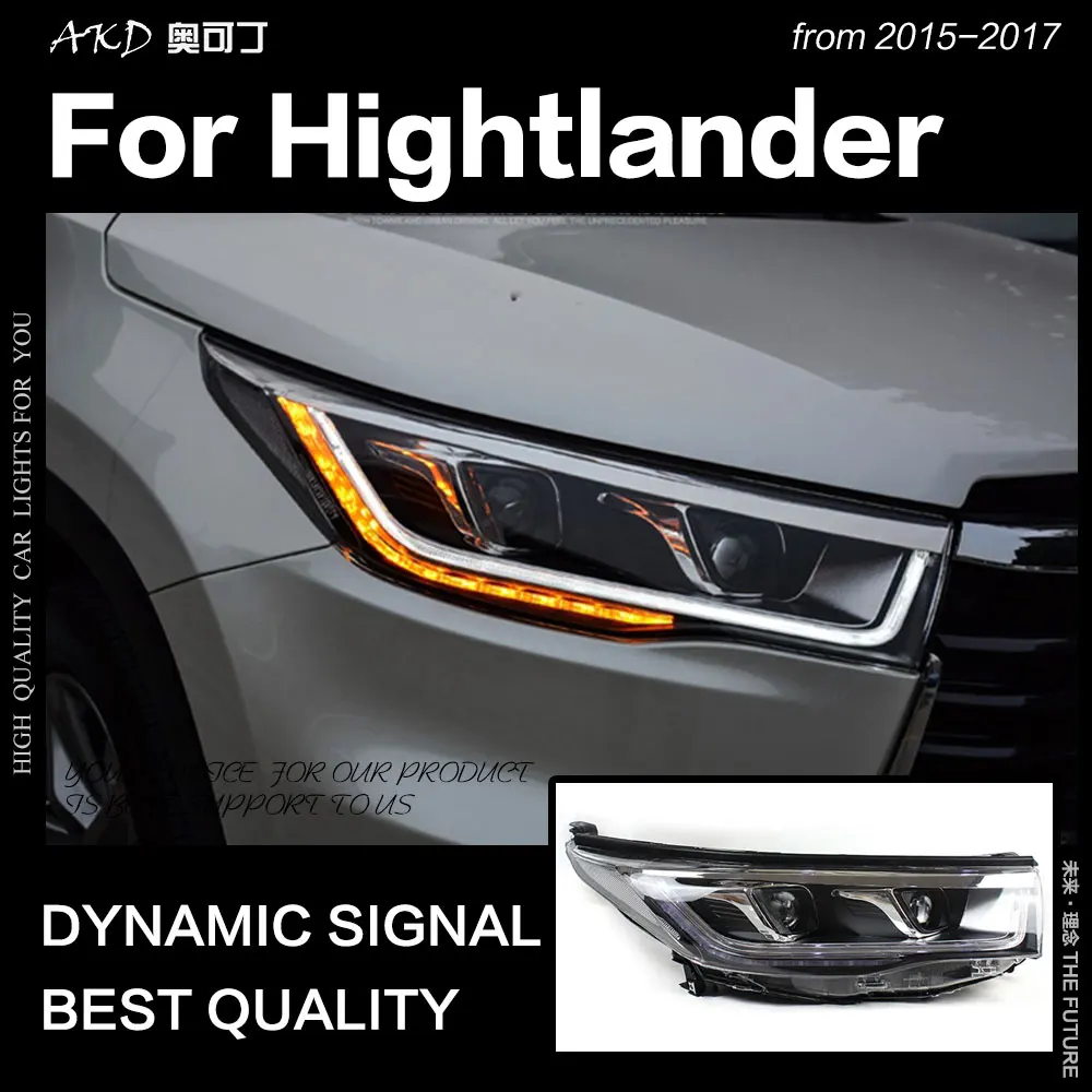 AKD Стайлинг автомобиля фары Toyota Highlander 2015 новые светодиодная… для Kluger фары DRL Hid фары ангельские глазки Биксеноновые аксессуары
