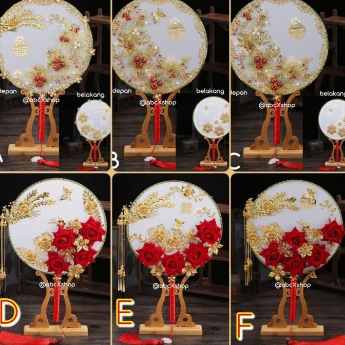 AKSESORIS PERNIKAHAN KIPAS SANGJIT PREMIUM MODEL RED ROSE GOLDEN RANDOM PERLENGKAPAN PESTA CRAFT
