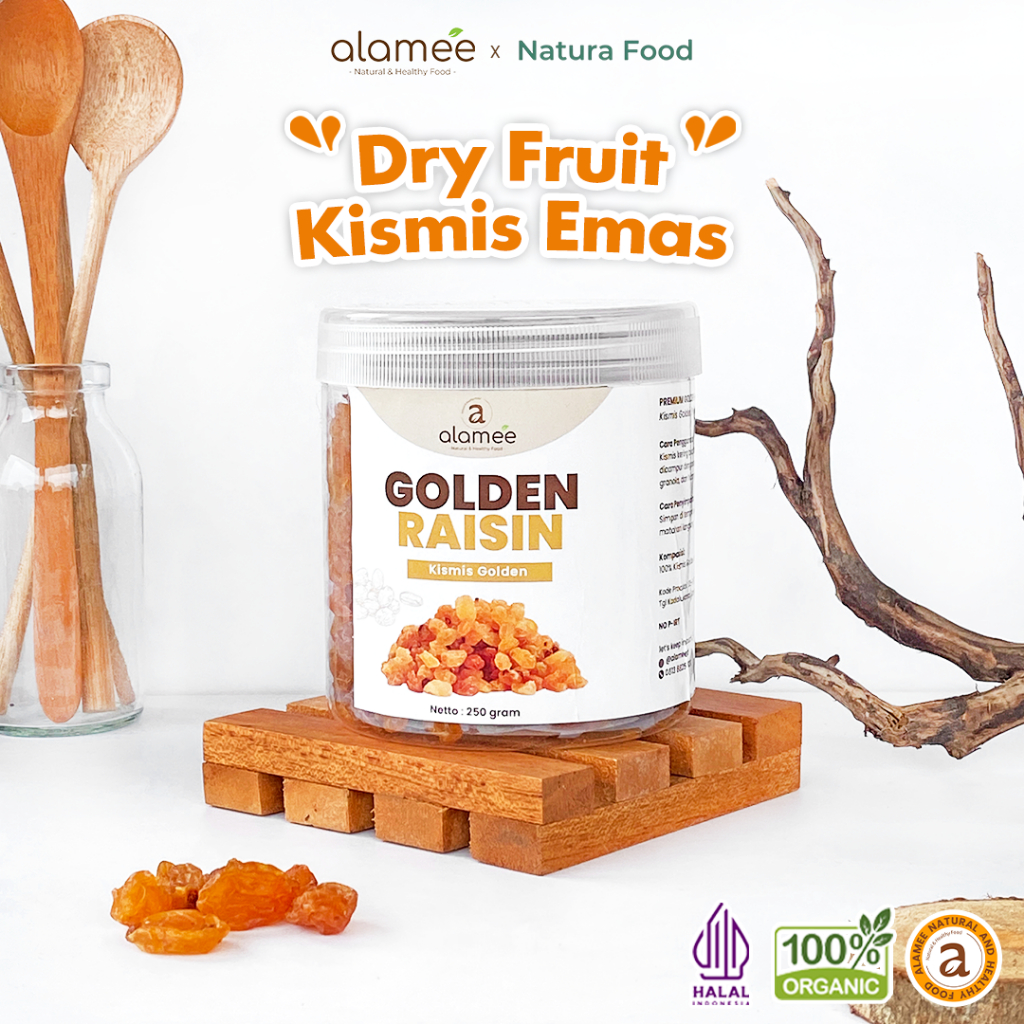 Golden Raisin atau Kismis merupakan cemilan yang terbuat dari buah anggur yang telah dikeringkan. Kismis memiliki banyak manfaat yang baik untuk tubuh kita. Kismis yang baik biasanya berasal dari jenis anggur tanpa biji atau anggur Thompson. Melalui proses pengeringan tersebut, Kismis menghasilkan nutrisi yang lebih berkonsentrasi dibandingkan anggur. Sehingga menjadikan Kismis sebagai cemilan alami, bergizi dan sehat.