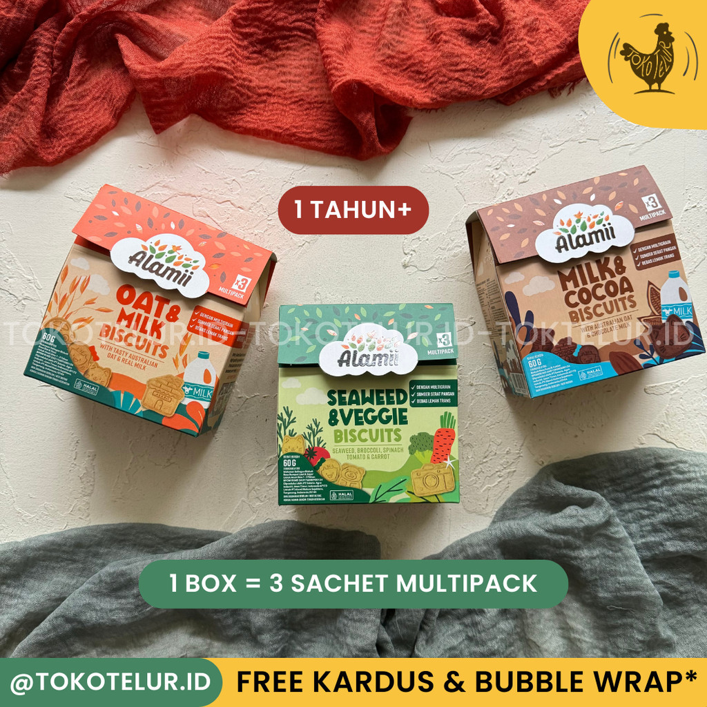 BARU! Alamii Multigrain Biscuits - Camilan Snack Biskuit untuk Anak (1 regular pack isi 3 single serve pack x 20g)