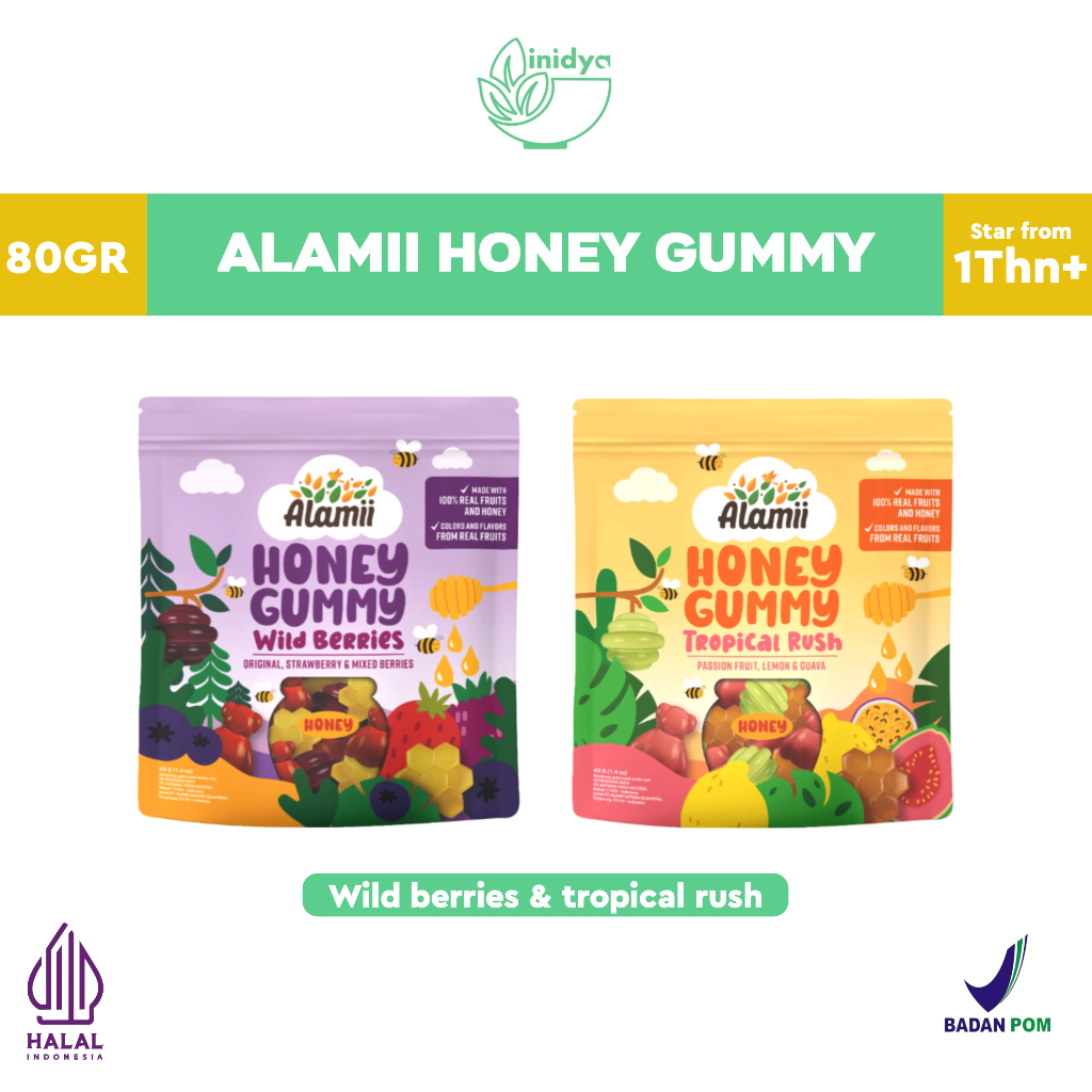 ALAMII Honey Gummy 40gram- Gummy Jelly Halal Anak Rasa Wild Berries Tropical Rusk Permen Anak