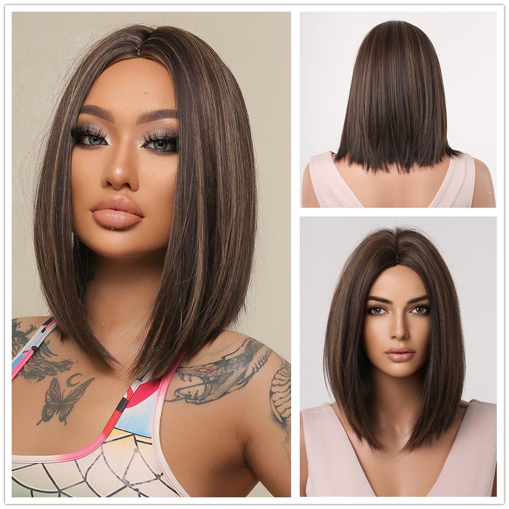 ALAN EATON Длинные коричневые парики с эффектом омбре Прямые многослойные парики с длинной челкой Женский парик с длинными волосами
