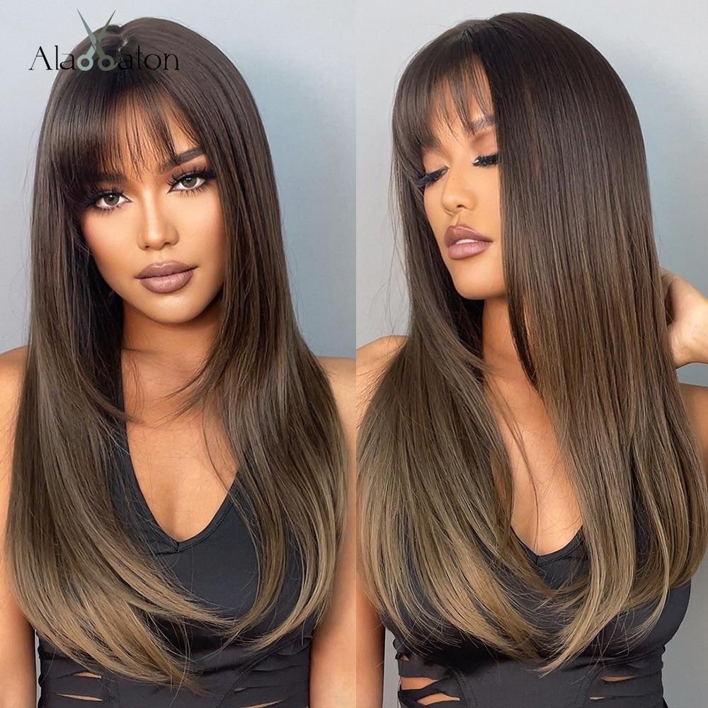 ALAN EATON Коричневый и светлый синтетические парики с эффектом омбре, длинные прямые реалистичные волосы, косплей, повседневный парик с челкой для женщин