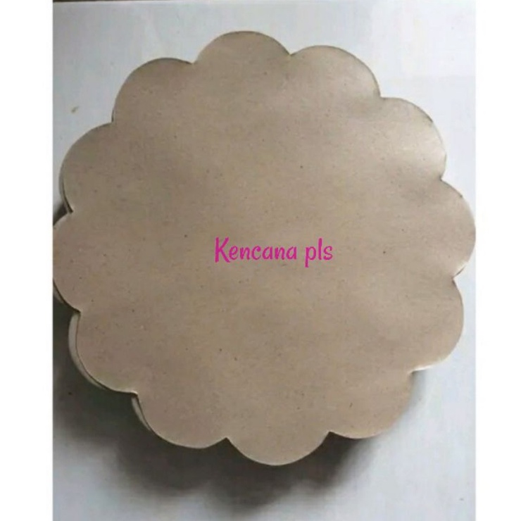 seperti kertas nasi umum nya , namun model nya lingkar berbentuk bunga..