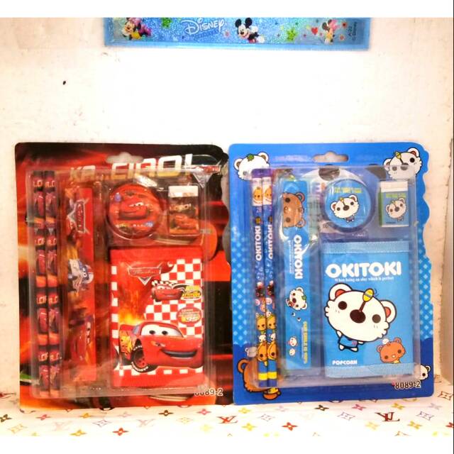 Alat tulis set untuk anak.. Bisa dijadikan untuk souvenir ada 2 varian gambar merah dan biru