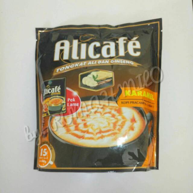 Alicafe karamel 5 in 1 Kopi pencampur dengan tongkat ali dan ginseng.
