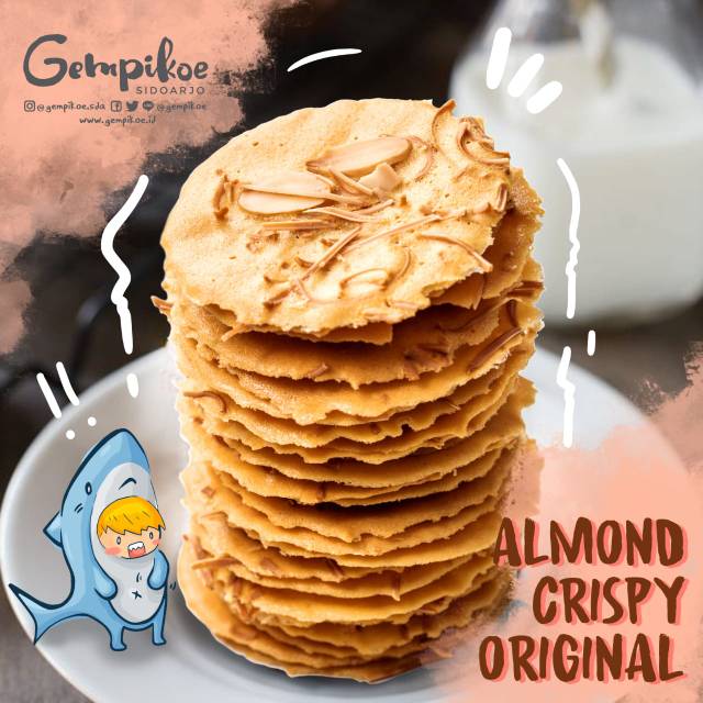 Almond crispy ini merupakan salah satu produk andalan dari Gempikoe. Terbuat dari bahan bahan premium pilihan, menjadikan produk terfavorit pilihan customer Gempikoe ini, mampu menyajikan cita rasa yang sangat nikmat dan renyah serta berhasil memikat customer dari segala kalangan usia, mulai dari anak - anak hingga dewasa. Kelebihan lainnya adalah produk ini dilengkapi dengan topping keju dan almond yang melimpah dengan 3 varian rasa terfavorit, yang terdiri dari :