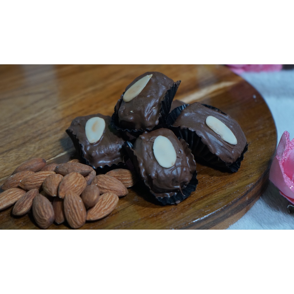 COOKIES YANG MENGANDUNG TEPUNG ALMOND,MENGHASILKAN TEKSTUR YANG LEMBUT DIDALAM ISIANNYA TERDAPAT KACANG ALMOND UTUH YANG DILAPISI COOKIES & DIBALUT COKLAT YANG MELIMPAH & POTONGAN ALMOND SLICES.