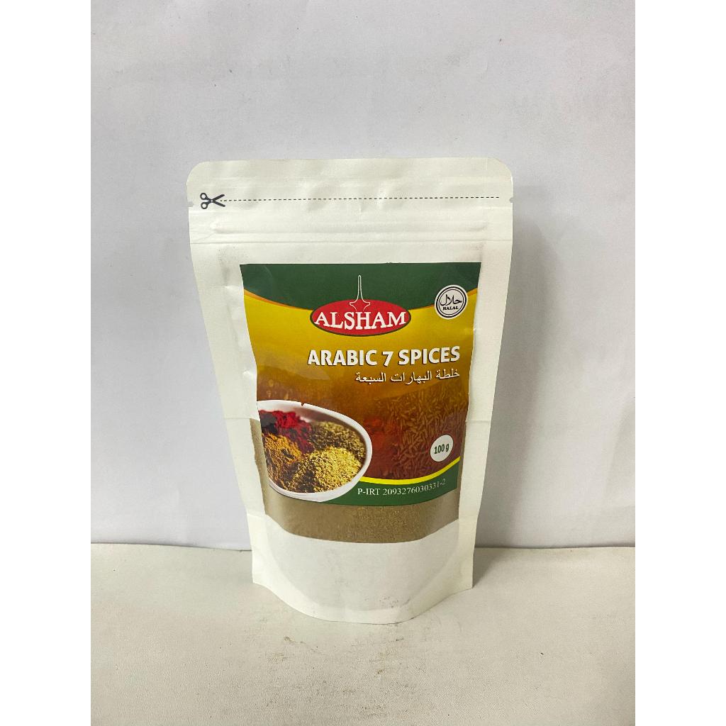 ALSHAM Arabic Seven Spices adalah campuran rempah khas dari kawasan Timur Tengah, khususnya yang sering digunakan dalam masakan Arab dan Levant (Suriah, Lebanon, Yordania, dan sekitarnya). Campuran ini biasanya dikenal sebagai "Baharat" (bahasa Arab: بهارات) dan digunakan untuk memberi rasa kaya, hangat, dan aromatik pada berbagai hidangan seperti nasi, daging, sup, dan stew.