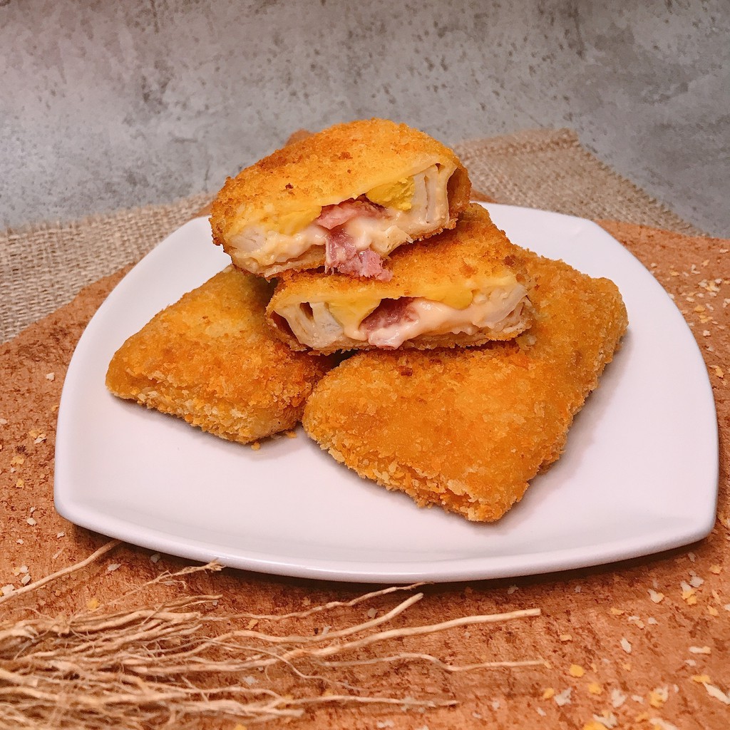 American risol dengan isi daging asap, telur, moyonaise dan keju