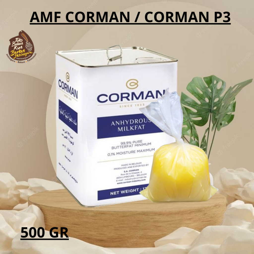 ( Corman Anhydrous Milk Fat )/Kemasan Repack 500gr Mirip seperti wisjman / Wisman Corman AMF Adalah butter dengan kandungan lemak susu hingga kurang lebih 99.8 persen... Tidak mengandung bahan bahan campuran tambahan seperti neutralizer,fragrance dll. Lebih padat karena tidak banyak campuran.