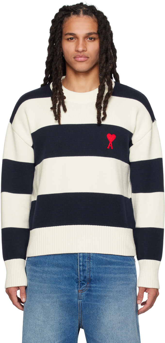 AMI Alexandre Mattiussi Off-White и темно-синий свитер Ami de Cur