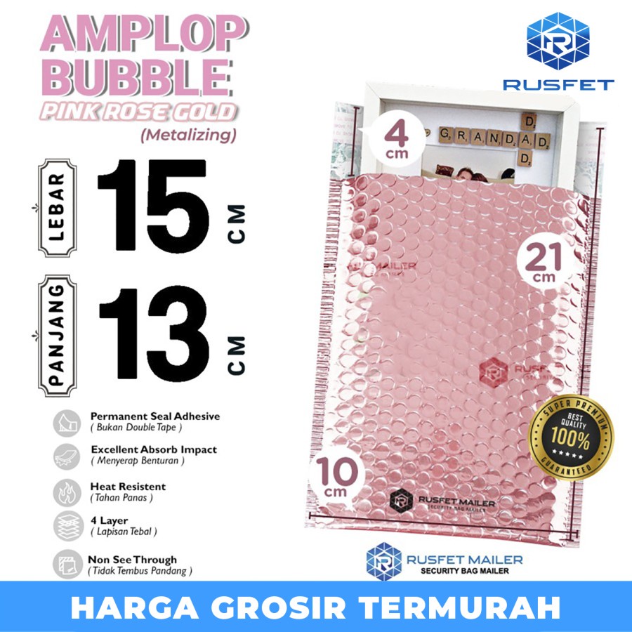 AMPLOP BUBBLE MAILER 15x13cm PINK ROSEGOLD BUBBLE WRAP ENVELOPE RUSFET