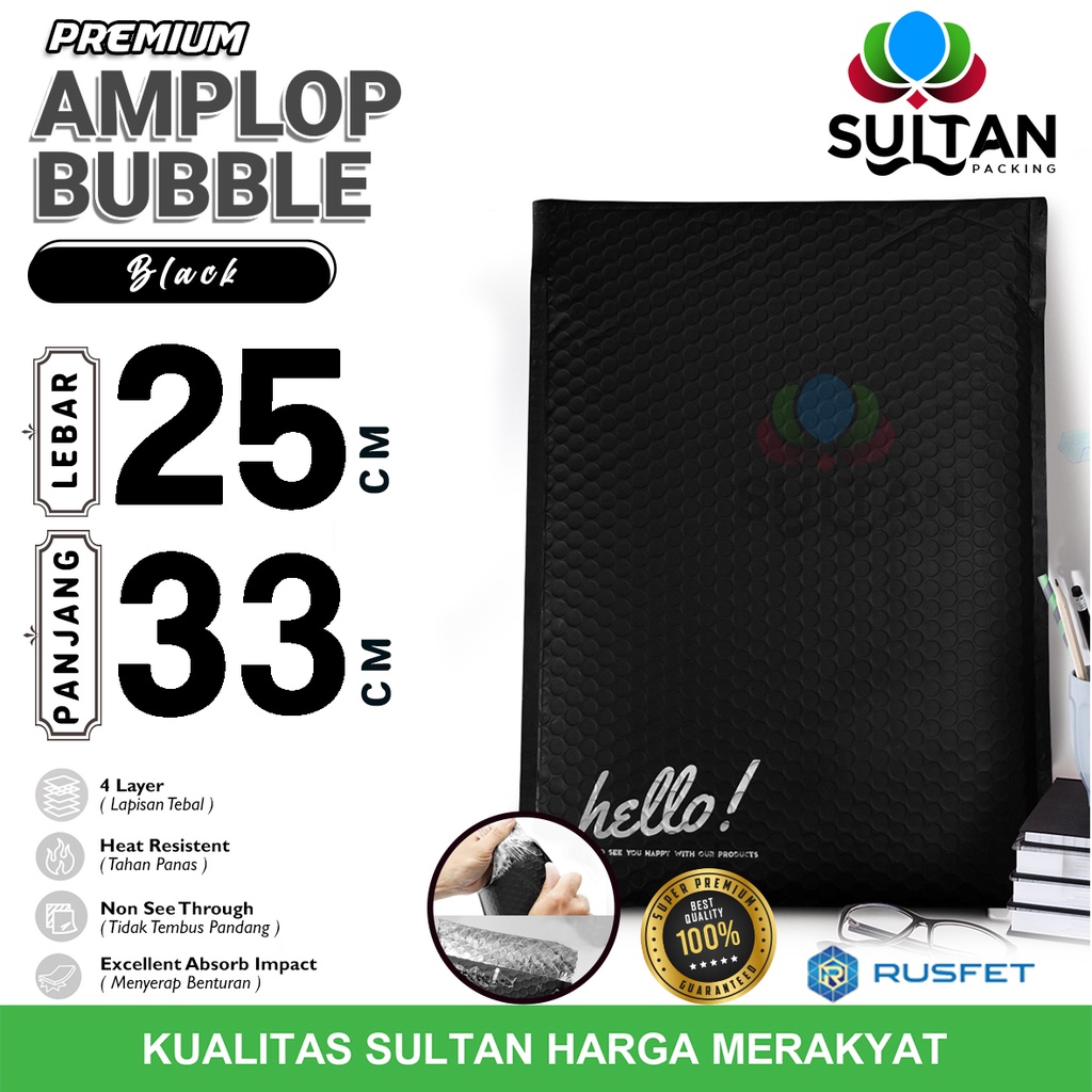 AMPLOP BUBBLE MAILER 25x33cm BLACK WRAP ENVELOPE RUSFET SATUAN HITAM