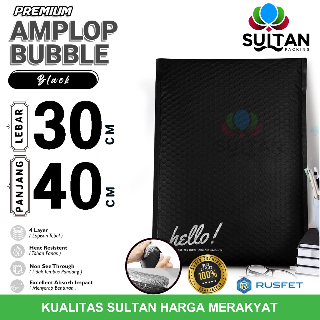 AMPLOP BUBBLE MAILER 30x40cm BLACK WRAP ENVELOPE RUSFET SATUAN HITAM PREMIUM