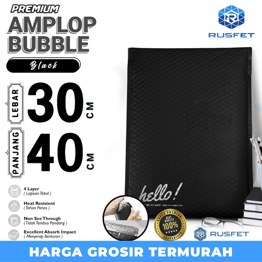 AMPLOP BUBBLE MAILER BLACK 30X40CM WRAP ENVELOPE RUSFET PREMIUM HITAM