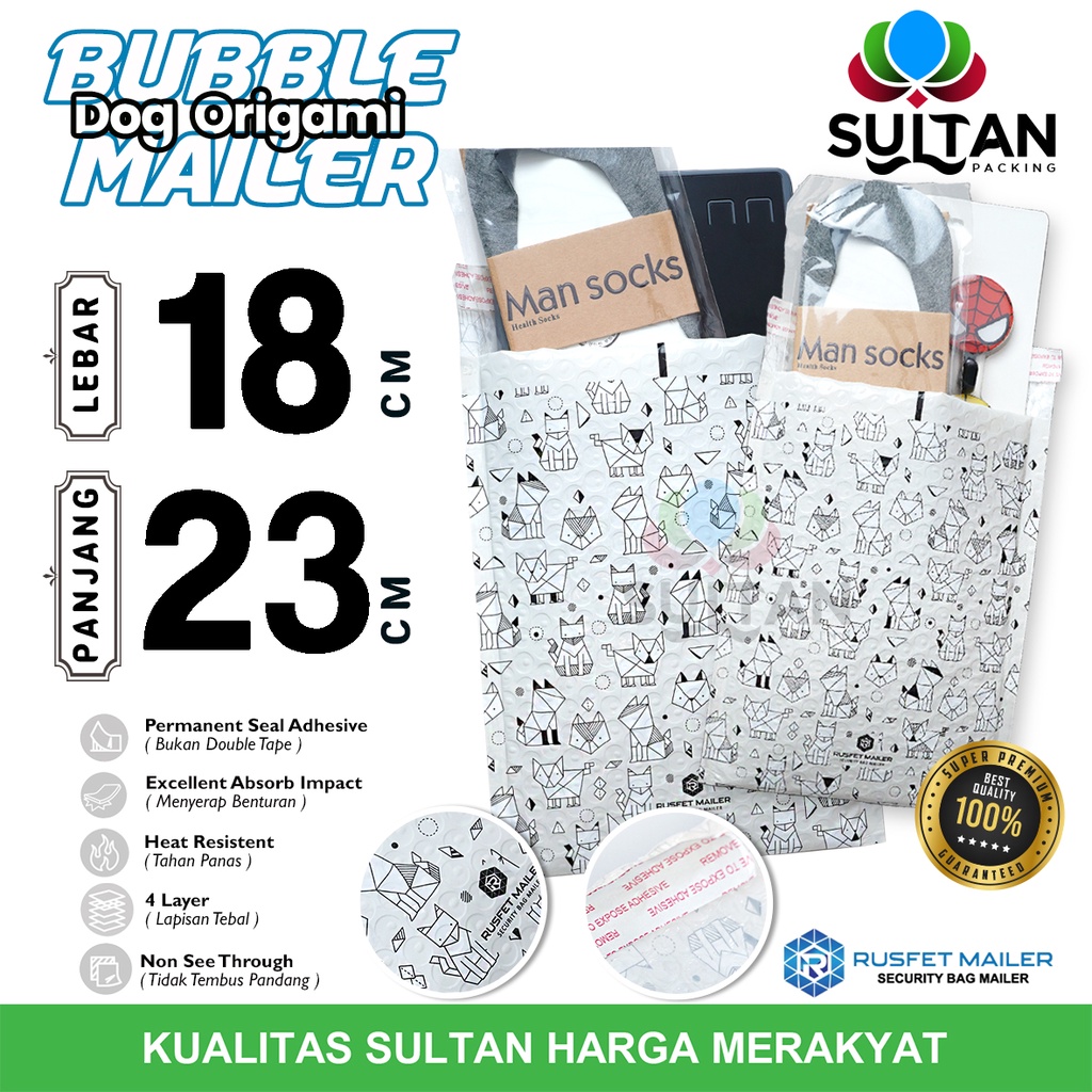 AMPLOP BUBBLE MAILER DOG ORIGAMI 18x23cm WRAP ENVELOPE RUSFET PREMIUM SATUAN