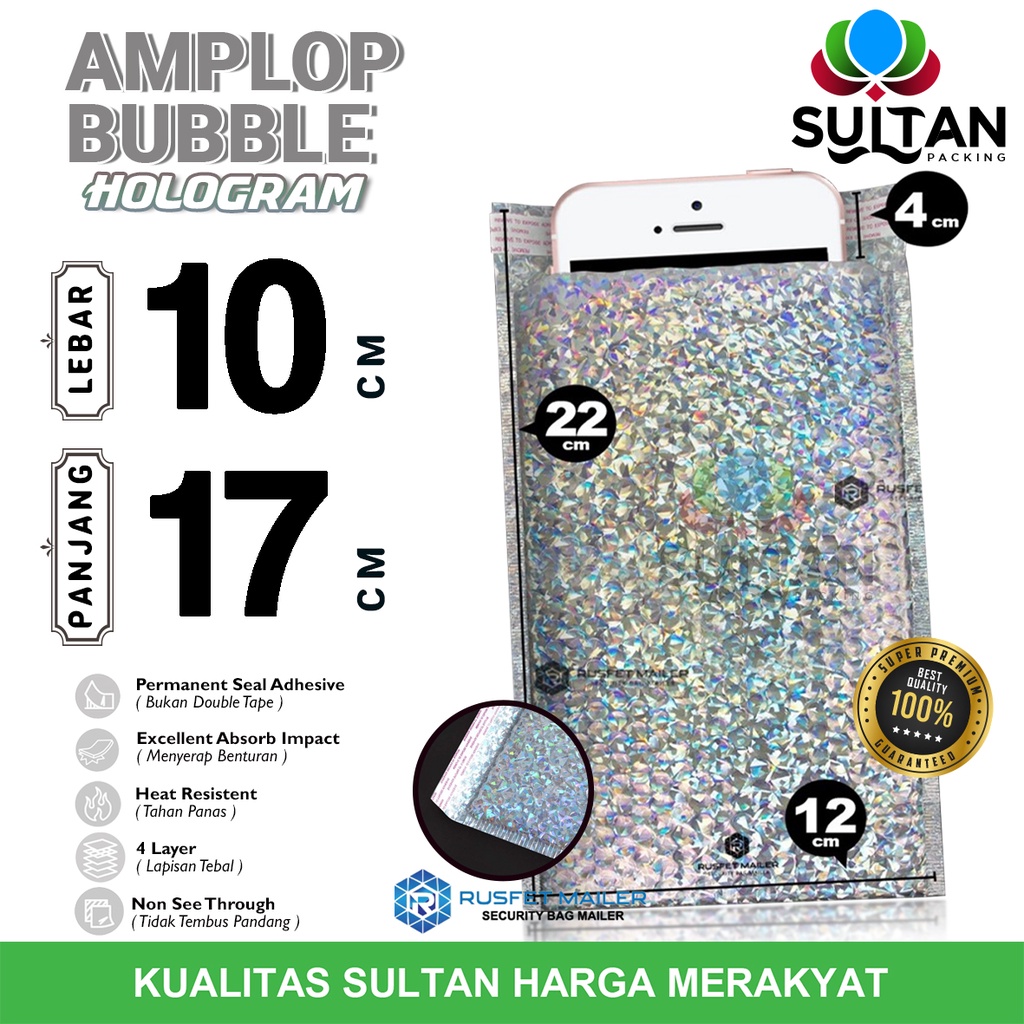AMPLOP BUBBLE MAILER HOLOGRAM 10x17cm BUBBLE WRAP ENVELOPE RUSFET SATUAN TEEMURAH