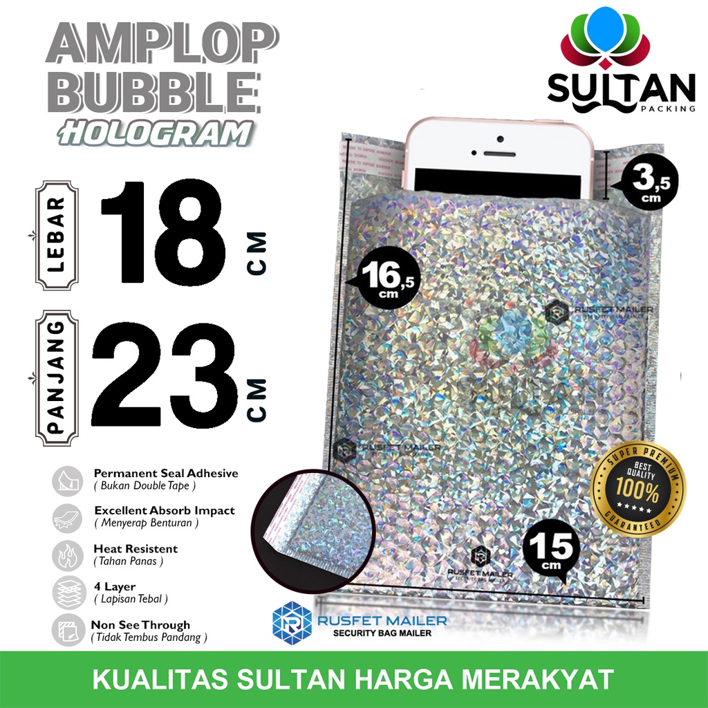 AMPLOP BUBBLE MAILER HOLOGRAM 18x23cm BUBBLE WRAP ENVELOPE RUSFET SATUAN TERMURAH