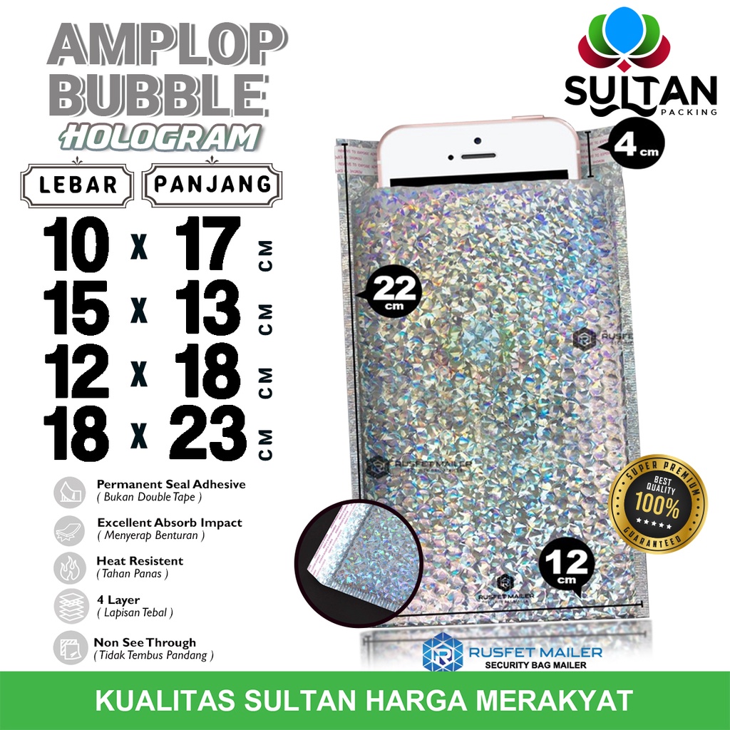 AMPLOP BUBBLE MAILER HOLOGRAM BUBBLE WRAP ENVELOPE RUSFET SATUAN TEEMURAH