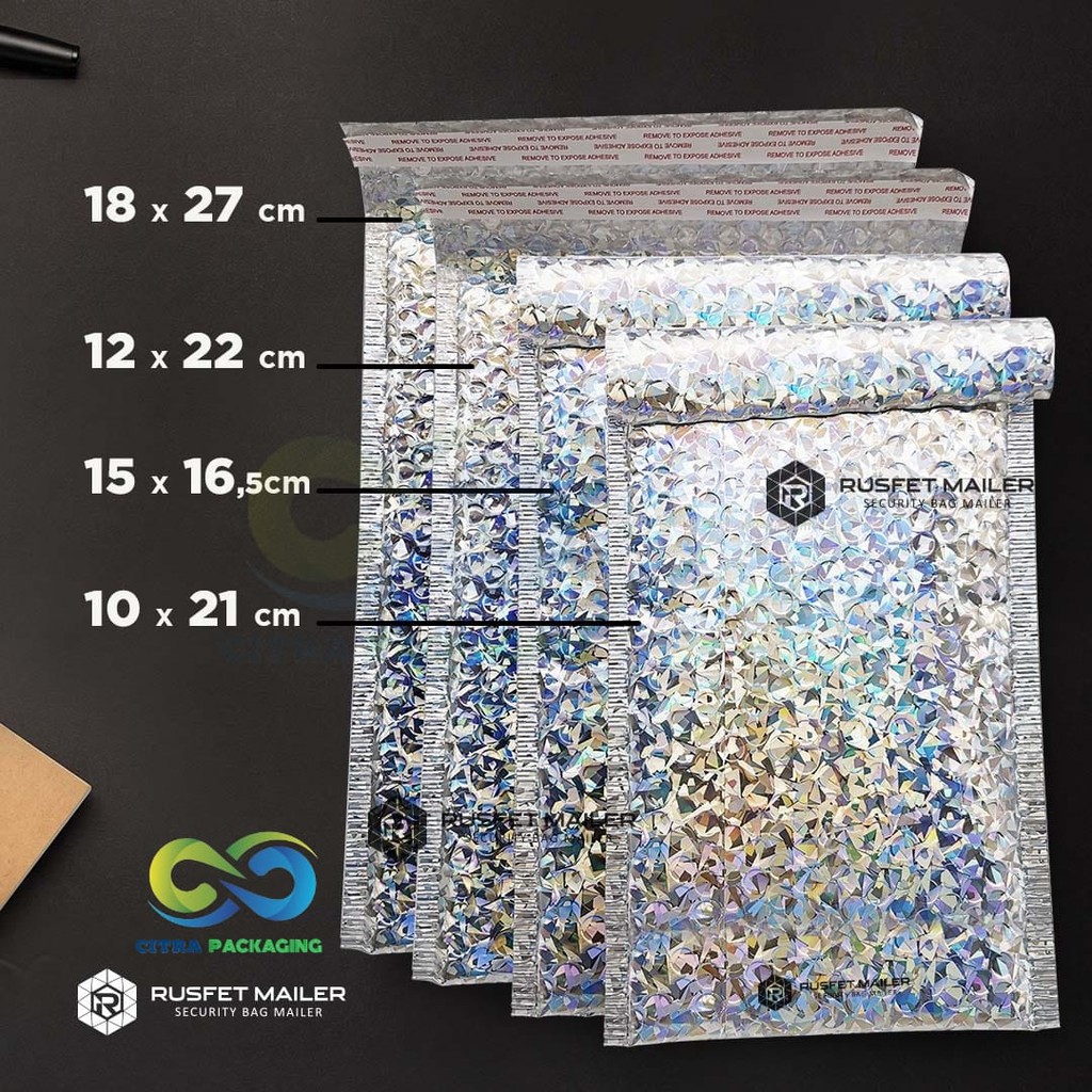 RUSFET BUBBLE MAILER - AMPLOP BUBBLE RUSFET - SECURITY BAG motif HOLOGRAM