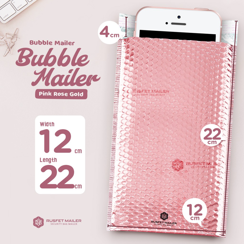 AMPLOP BUBBLE MAILER / BUBBLE PACKING PINK ROSE GOLD - SECURITY BAG - RUSFET 12X22