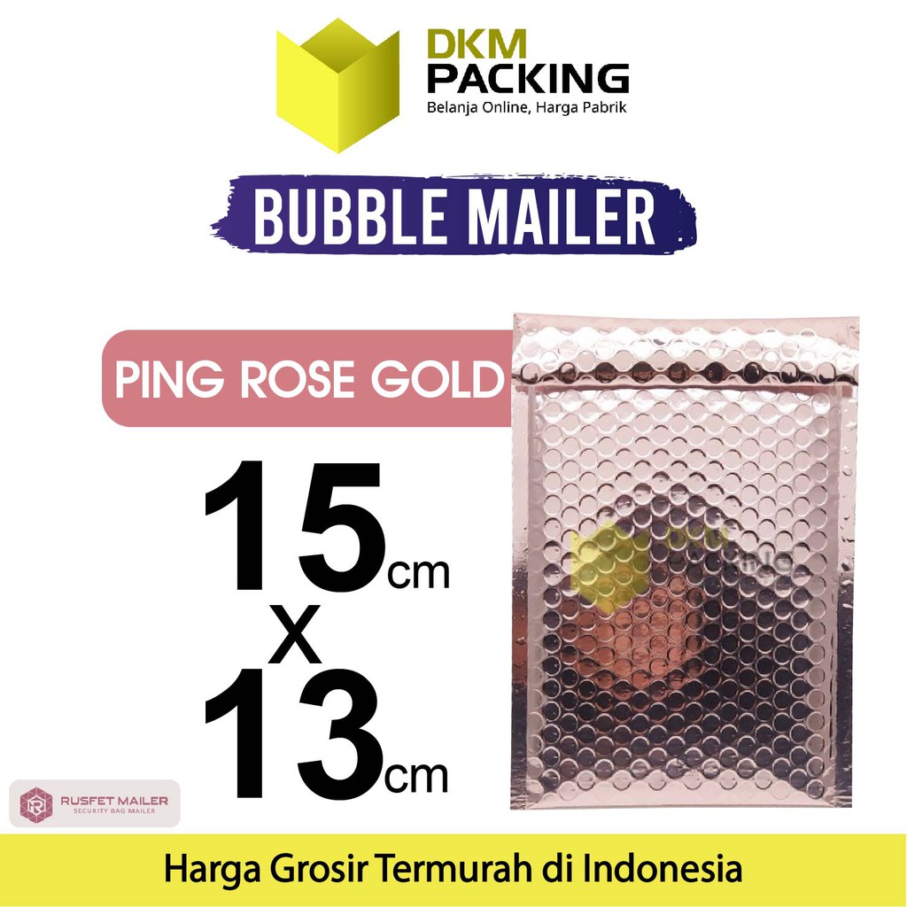 AMPLOP BUBBLE WRAP PINK ROSE GOLD 15x13cm RUSFET ENVELOPE BUBBLE BAG MAILER PREMIUM TERMURAH / SATUAN