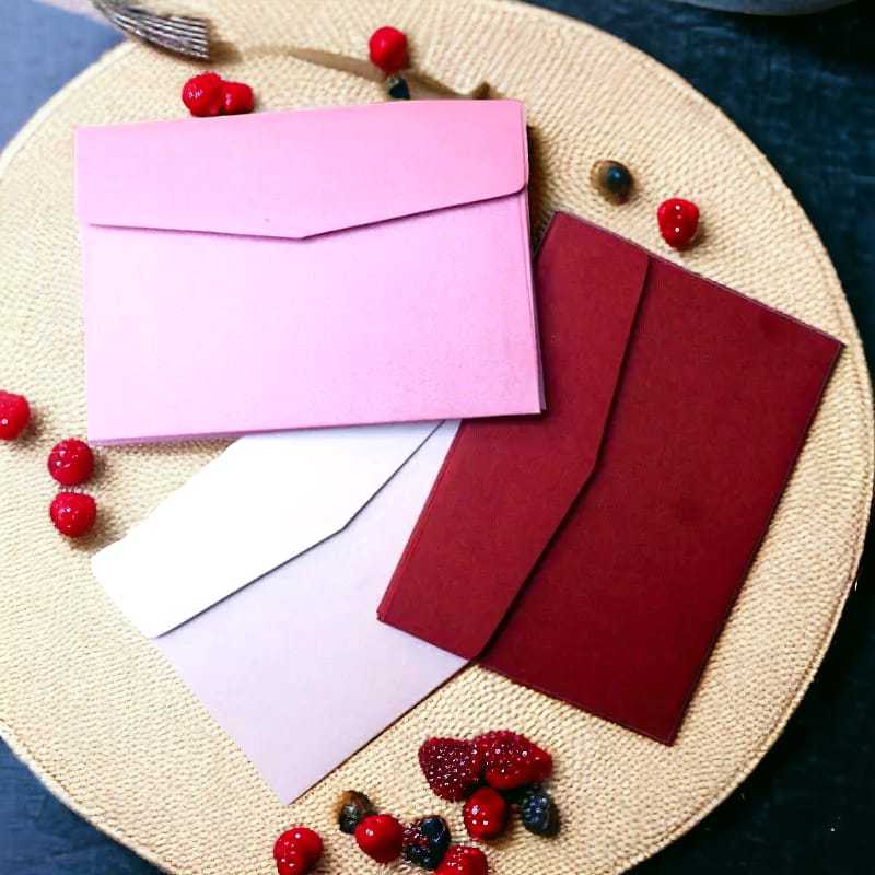 Amplop ini biasanya akan memiliki berbagai varian warna yang disesuaikan dengan warna kartu ucapan itu sendiri.