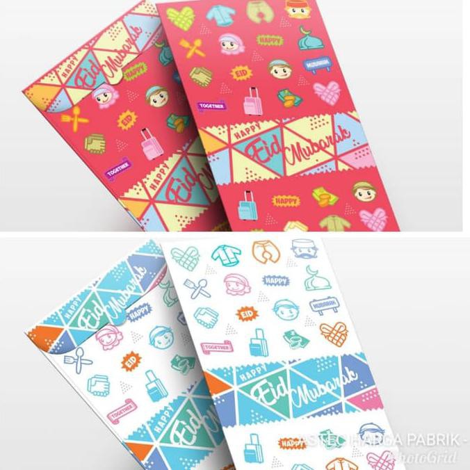 Amplop Lebaran dengan aneka motif dan warna,serta design unik dan lucu serta berkarakter, dengan bahan kertas kualitas bagus "ART PAPPER LAMINATING GLOSSY"kertasnya tebal tidak mudah rusak/lecek, mengkilat sehingga hasil cetak sangat bagus, dengan ukuran 7,5x16 cm & berat 150 gram, uang kertas tidak perlu dilipat, ada klip pengunci amplop jadi tidak perlu di lem atau staples dengan kapasitas hingga 20 lembar pecahan berapa saja.