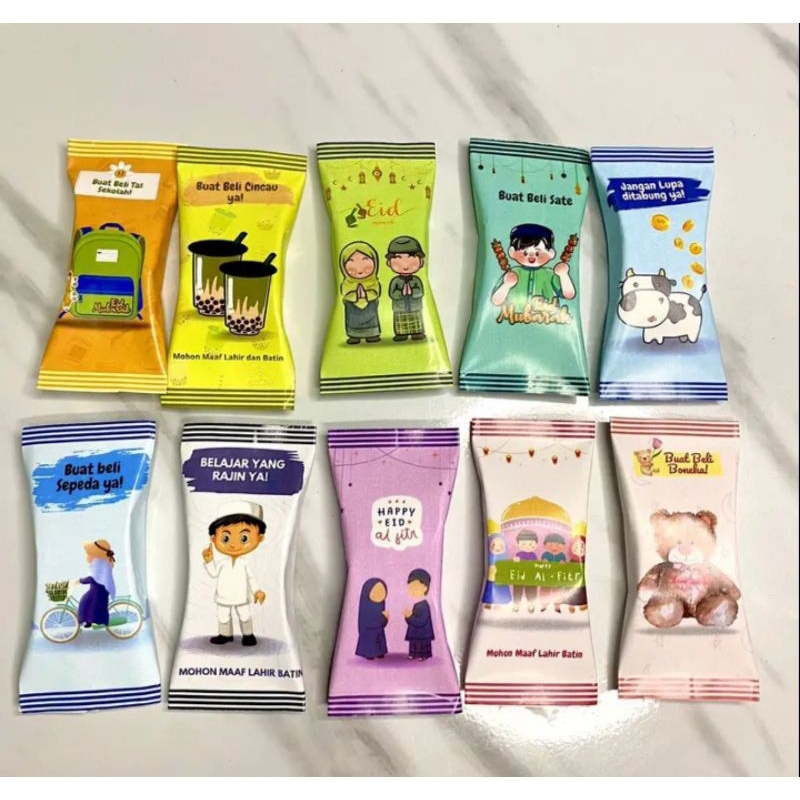 Amplop Permen lebaran lucu dan unik model permen dengan pilihan kata-kata dan desain yg bermacam-macam.